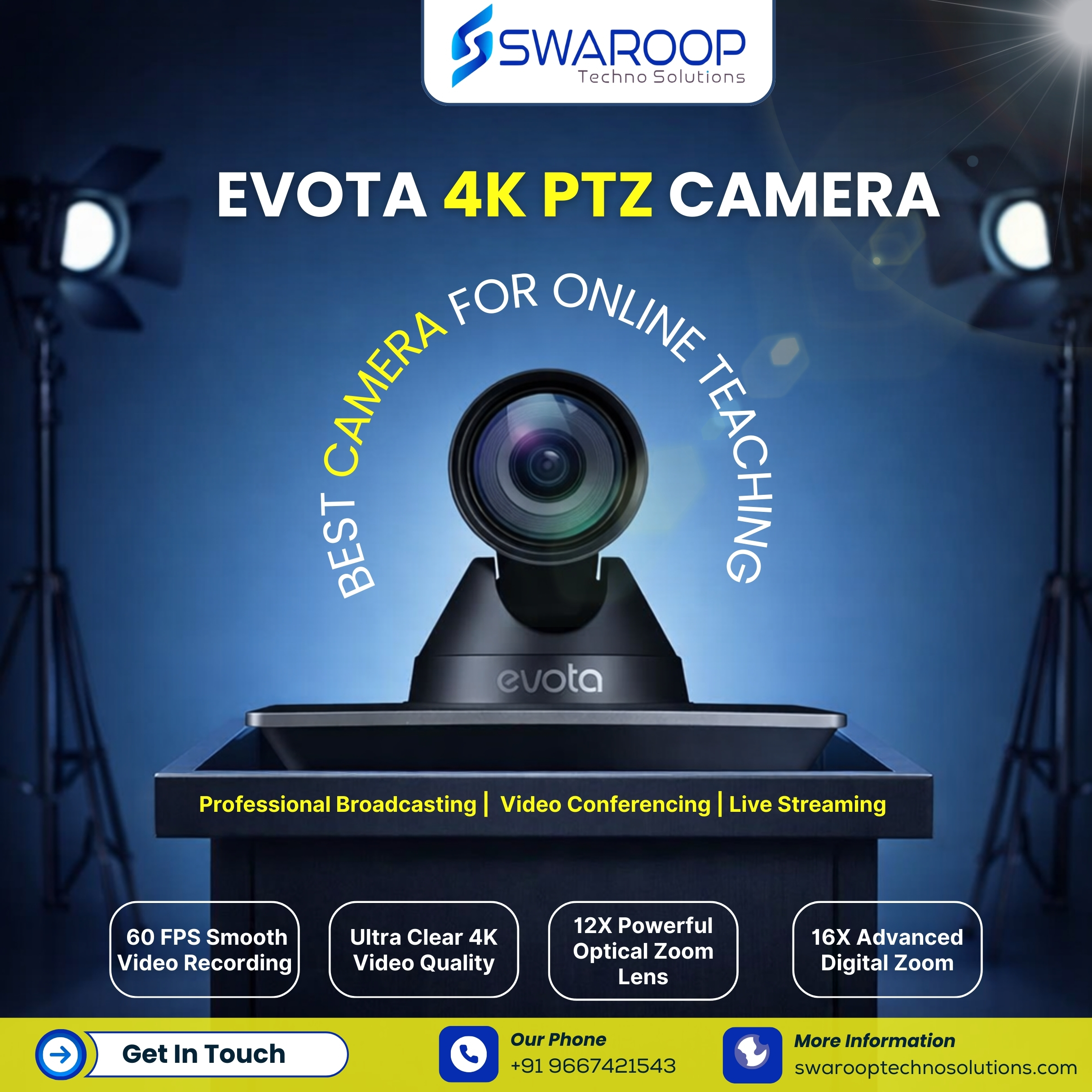 EVOTA 4K UHD PTZ Camera with 12X Optical Zoom, AI Auto-Tracking, HDMI/USB/SDI/IP Output – Ideal for Conferencing, Streaming, and Classrooms