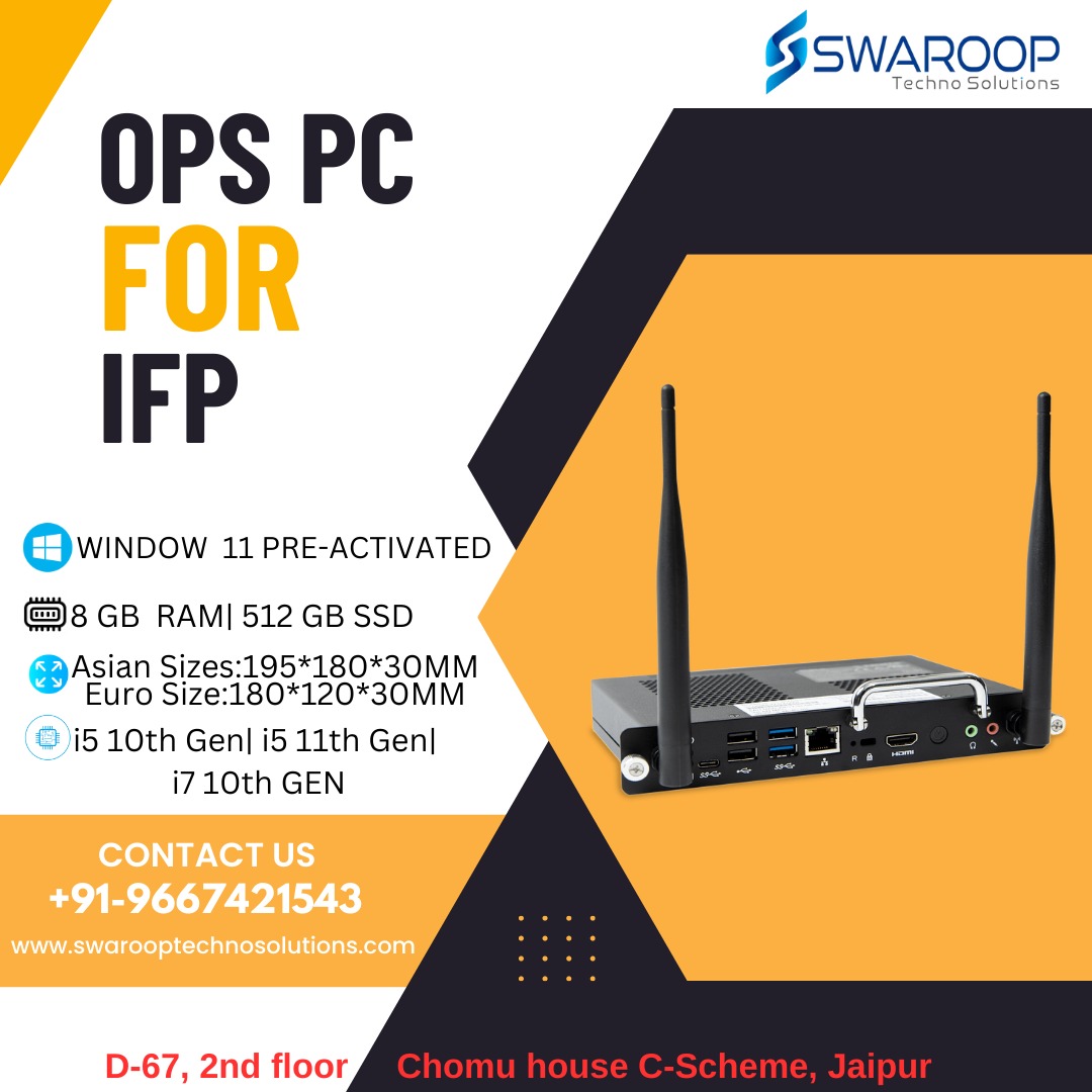 Discover how the Open Pluggable Specification (OPS) enables seamless integration and enhanced functionality of interactive flat panels. Our OPS configuration features an Intel i5 processor, up to 8GB RAM, 256GB SSD, with Note 3, Note 5 various storage options, onboard LAN, audio support, multiple connectivity ports, and more. Elevate your interactive display experience with OPS technology. Visit swarooptechnosolutions.com for more information.